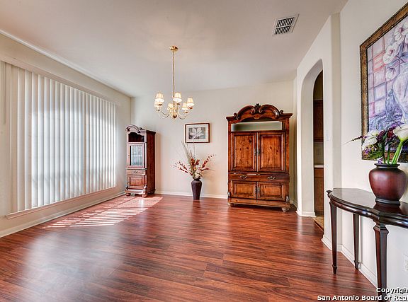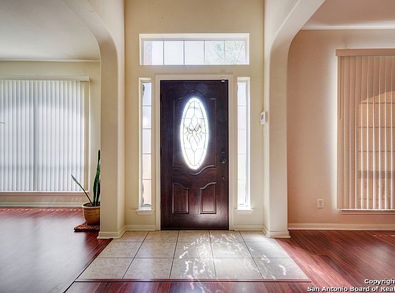 Open floor plan, high ceilings, foyer entry, formal living & dining. Cozy family room w/ fireplace & window seat. Spacious open kitchen lots of storage. No carpet downstairs, tile & laminate throughout. Large master down w/ recently remodeled bath. Four large secondary bedrooms up along with a gameroom, media room complete w 100" screen, projector & speaker system AND flex/bonus area. **ROOF REPLACED 2017, HVAC, FENCE & CARPET REPLACED 2016! **Located near Randolph, Ft Sam, shopping & major freeways!
