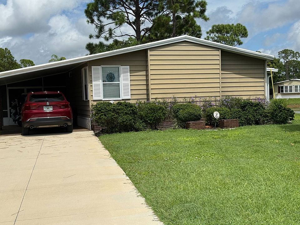 This lovely, manufacture home is on leased land in Lake Fairways Country Club, North Fort Myers, Fl. Price to sell at: $58,900. Monthly lot rent is $1245. There are many updates in this home including a beautiful water view. New 3/4" subfloors and luxury plank vinyl floors. Updated the vapor barrier in 2018, new kitchen windows, updated plumbing (no gray pipes), updated kitchen cabinets, countertops, sink & faucet. Both bathrooms are updated, washer/ dryer included. Wine refrigerator and mini split AC, furniture and acrylic windows on the lanai. 2- seater EZGO golf cart with good tires and a lithium battery is for sale at $1500. Enjoy lots of community amenities such as an 18-hole golf course, tennis courts, bocce ball, horseshoes, pickleball, poker, bingo, entertainment, BBQ parties and fun at the pool, clubhouse, library, gym, pub and much more.