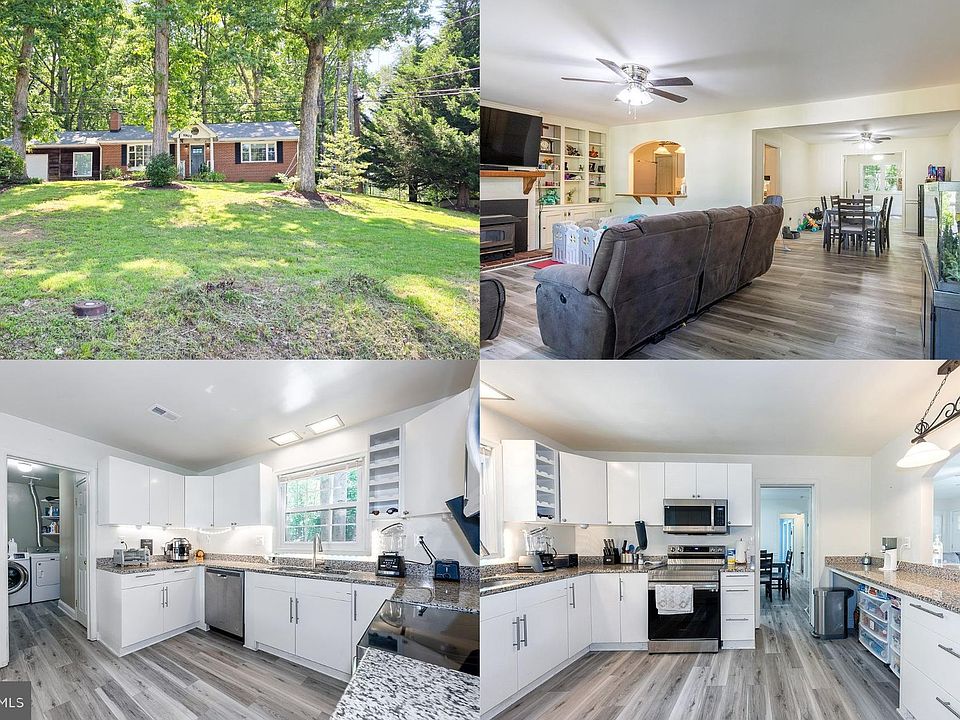 Welcome to this charming single-family home nestled on a generous 0.4-acre lot in tranquil Carborough Heights backing to woodlands and the Medal of Honor Golf Course for ultimate privacy. This lovely renovated 3 bedroom, 2 full bath home delivers plenty of living space and the convenience of one-level living, upgrades galore, and the added bonus of no HOA fees. The beauty begins outside with a tailored exterior with covered entrance, an oversized driveway and 1-car garage, a stunning stone patio, delightful gazebo, and fenced backyard surrounded by majestic trees offering a private and serene setting, perfect for outdoor entertainment and quiet relaxation. Inside, an open floor plan, beautiful new luxury vinyl plank flooring throughout, a soft neutral color palette, custom built-ins, cozy woodstove, a renovated kitchen with new stainless steel appliances, and updated baths create instant appeal. Significant updates including a new roof, front and rear doors, and garage door in 2020, new windows in 2019, new hot water heater in 2022, 5 new ceiling fans, and two 200-amp electrical panels ensure much of the critical home infrastructure is up-to-date and reliable. ******* An open foyer welcomes you home as rich wide plank flooring flows into the spacious living room where a large bay window fills the space with natural light illuminating warm neutral paint and a cozy fireplace with woodstove insert flanked by custom built-in bookcases. Steps away, the dining room offers plenty of space for both formal and casual occasions and is accented by chair rail adding refined style. The remodeled kitchen is a chef’s delight with gleaming granite countertops, pristine white cabinetry with under cabinet lighting, and quality stainless steel appliances including a smooth top range and built-in microwave. A charming opening to the living room with a breakfast bar makes spending time with family and friends a breeze during meal prep. A laundry room and a large mudroom with lots of storage space off the garage add convenience. Three light filled bedrooms, each with LVP flooring and lighted ceiling fans share access to two beautifully appointed full baths. ******* All this situated just minutes from Quantico, I-95, and the VRE, offering easy access to major transportation routes. Backing to woodlands and the Medal of Honor Golf Course ensures loads of privacy, while being so close to the Quantico Marina and the Potomac River, provides ample recreational opportunities. More than just a house—this home is a perfect blend of comfort, convenience, and natural beauty, just waiting to be called your own!