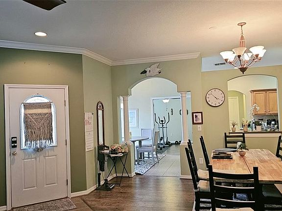 Pvc fenced yardScreened lanaiAlarm systemLarge open floor planBar and breakfast nookDecorative columns and archesSplit bedrooms