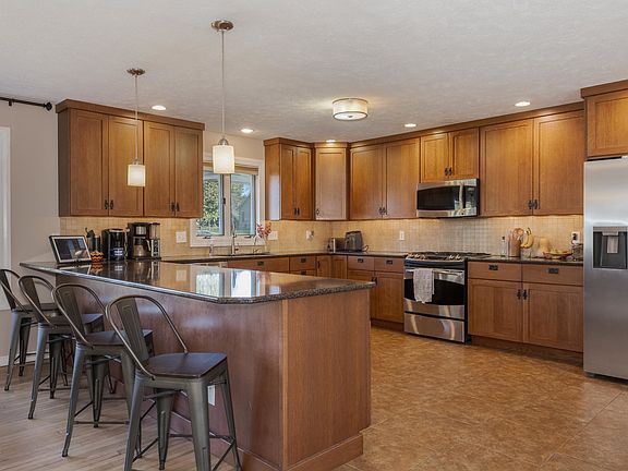 Charming 4 bed, 4 bath, all-brick walk-out ranch in southeast Bloomington with a mature, tree-lined lot and no immediate backyard neighbors. Located in the sought-after Tri-Valley school district, this home has been meticulously updated. The kitchen, features quarter-sawn oak cabinets, quartz countertops, SS appliances, under-cabinet lighting, and ceramic tile flooring. The spacious deck, French doors and large patio offer perfect outdoor living spaces. Recent updates include a new garage door and opener (2022), a completely remodeled master bath with new floors and shower (2023), and newer HVAC with a heat pump. The three additional baths have all been updated, and the roof was replaced in 2006. This home offers comfort, style, and outstanding views. Ready to move in and enjoy!