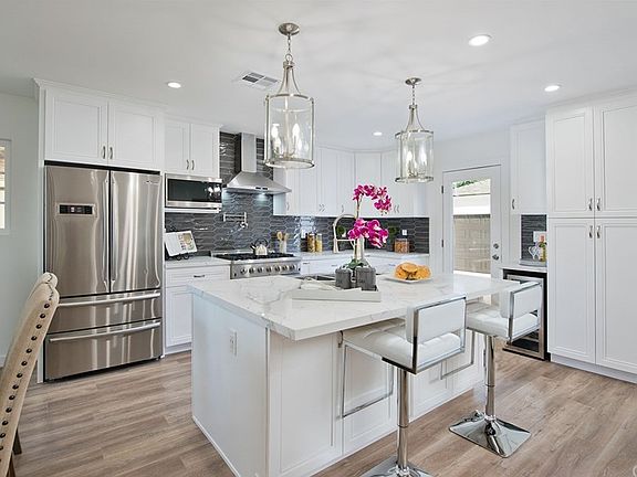Completely remodeled in 2018 step into your New Home! Custom Kitchen with Quartz countertops & cabinets with soft close doors/drawers with cabinet pullouts for added storage. LED under cabinet lighting. Stainless Steel dual basin Farm House Kitchen Sink with new garbage disposal. Commercial Kitchen appliances that include dual fuel professional Chef's Range with Pot filler above Range, Counter Depth Refrigerator, dishwasher & Microwave Oven all in Stainless Steel. To complete your Entertaining, a 21 bottle under-counter Wine Refrigerator. Master Suite with Master Bath featuring an in-wall Fireplace with French doors leading to Patio. 3 additional Bedrooms & 1.5 updated bathrooms. New engineered flooring throughout. Home has new dual pane windows, insulation throughout home, Oversized 4 Ton HVAC system, Rheem tankless water heater, copper & ABS LED lighting modules, USB outlets, Nest WIFI thermostat. Grassy Entertainer's Backyard with Patio. 2-car detached Garage.