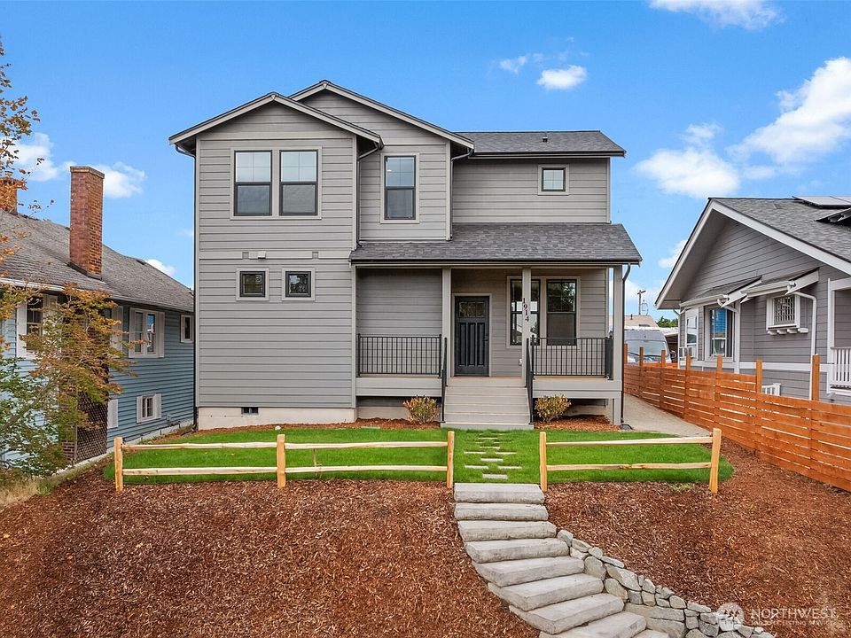 Don't miss this beautiful brand new 3 bedroom 2.5 bath open concept floorplan. Featuring lots of upgrades, energy efficent ductless mini split provides A/C, black/white vinyl windows, spacious kitchen features custom cabinetry, slab quartz countertops, stainless steel appliances, designer backsplash, can lighting through out. Lots of storage. Covered front porch, fully landscaped low maintenance yard with sprinkler system, 2 car insulated garage accessed from the Alley. Great location walking disctance to the PSNS gates and the Bremerton ferry, also close to the bus. Lots of parking, off street and on street parking, room for a small RV.