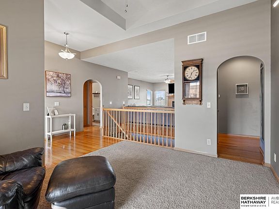 Beautiful south-facing ranch in the Papillion LaVista School District! The open-concept main floor is filled with natural light and features a formal dining or sitting room, a cozy living room with a fireplace, and a spacious kitchen with ample cabinets, generous counter space, a kitchen island, barstool seating, & a pantry. This well-maintained home boasts a brand-new sump pump and a 2025 HVAC system for added peace of mind. The primary suite offers a coffered ceiling, French doors to the deck, dual sinks, a whirlpool tub, a tiled shower, a private toilet room, & a large walk-in closet. A remodeled full bath & additional bedroom complete the main floor. The walkout basement is built for entertaining, featuring a living area, wet bar, two bedrooms, a 3/4 bath, & a fully equipped theater room with seating, a movie screen, projector, & electronics. Outside, the backyard is an entertainer’s dream with beautiful landscaping, a composite deck, & an under-deck area.