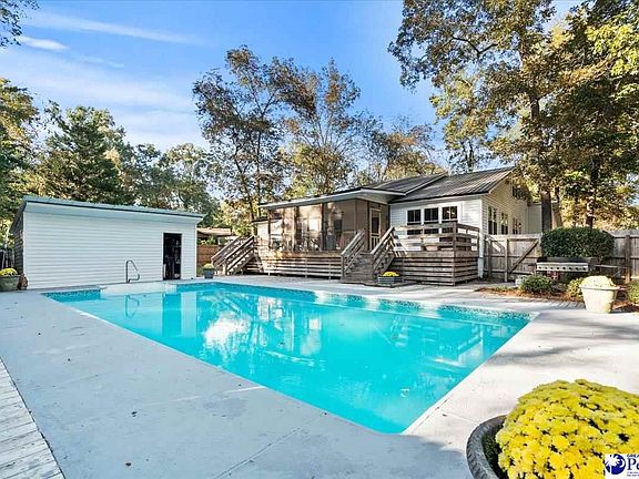 Welcome to 1914 Deerwood Place, a beautifully updated home tucked away on a quiet cul-de-sac in Florence! This 4-bedroom, 2.5-bath property sits on a spacious 0.56-acre lot with a private fenced backyard oasis featuring an in-ground saltwater pool, pool storage room, and an additional fenced area complete with chicken coop and workshop. Inside, you’ll find a thoughtfully designed floor plan with three bedrooms and two and a half bathrooms on the main level. The primary suite has been completely remodeled and includes a spa-like bathroom with a huge soaker tub and a large walk-in closet. Two additional bedrooms share a convenient Jack-and-Jill bath. The large living room with a cozy fireplace opens to a formal dining area, where a striking spiral staircase leads to the upstairs fourth bedroom or home office. The renovated kitchen boasts butcher block counters, stainless appliances, recessed lighting, and flows seamlessly into the sunken den, perfect for everyday living or entertaining. This home has been meticulously improved with all-new vinyl windows, new siding, new deck and screened porch, new pool liner and pump, tankless water heater, new septic tank and drain lines, new compressor for the HVAC, new wood fencing, concrete slab for a dog pen, updated electrical panel and wiring, security system, new laundry room, and new ceiling fans throughout. Every detail has been cared for, blending charm, comfort, and functionality. If you’ve been looking for a home that offers peace, privacy, and plenty of outdoor enjoyment, 1914 Deerwood Place is the one!