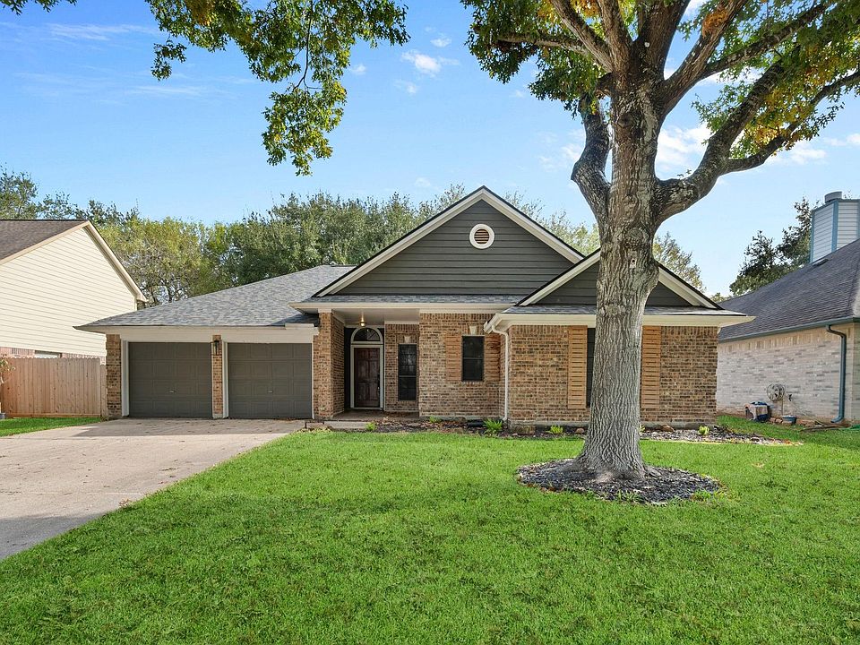 This stunning one-story, 3-bedroom, 2-bathroom home offers both style and functionality in the highly desired Brittany Bay neighborhood. Step inside to a flex area by the formal entry, perfect for an office, formal dining, or play space. The generously sized family room is graced by wood beams and a fireplace for winters. Recently remodeled and featuring a brand new roof, this home is move-in ready. The primary suite is spacious, with an en-suite bathroom boasting a separate shower, soaking tub, his-and-her closets, and dual sinks for ultimate convenience. Outside, enjoy the charm of a beautiful mature oak tree in the front yard, adding character and shade to the property. Located in the sought-after CCISD, this home combines modern updates, thoughtful design, and a prime location for the perfect family living experience.