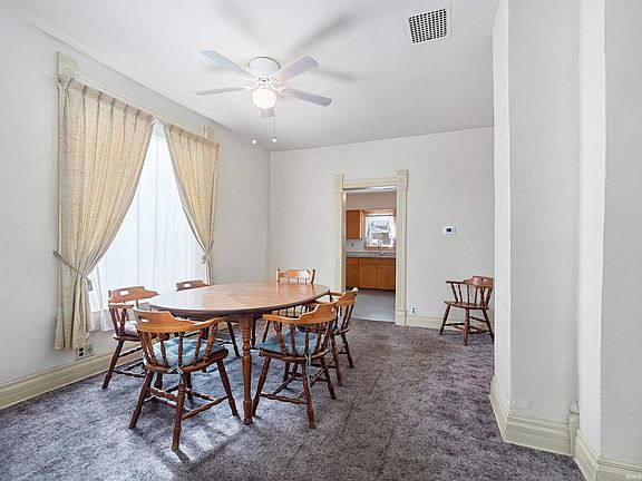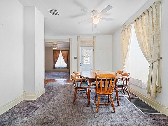 Historic home with great potential! Original hardwood floors and trim. Within the last three years the furnace, water heater, and entry doors were replaced and the electric service was upgraded and new electric panel installed. The kitchen was drywalled five years ago. The huge front porch welcomes you into the home. The dining room and living room have large windows that let in tons of natural light and there's lots of room for entertaining a crowd. The eat-in kitchen has access to the attached garage and the basement stairway. One bedroom and bath are downstairs. Upstairs has two bedrooms, a large landing, and an attic room that doesn't have a heat duct but was used as bedroom.