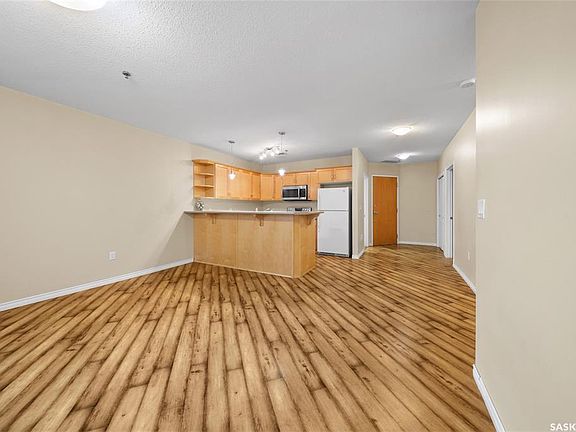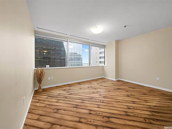 Downtown Living with City Views – 9th Floor Condo with 1 Bedroom + Den Welcome to this spacious 9th-floor condo in the heart of downtown Regina. Offering 1 bedroom, a den, and an open-concept layout, this home combines comfort, convenience, and style with fantastic city views. The bright kitchen features ample maple cabinetry, arbourite countertops, a raised eating bar, and a suite of stainless steel appliances, including a vented microwave hood fan, stove, dishwasher, and fridge. The north-facing dining and living area is bathed in natural light through large windows, with uniform blinds provided by the condo board for a consistent exterior appearance. The spacious primary bedroom includes two closets, one being a walk-in, while the den makes for an ideal office or hobby space. A full 4-piece bathroom and an in-suite laundry room with extra storage complete the suite. Residents enjoy access to the 2nd-floor fitness centre, an amenities room, and a recently renovated outdoor patio terrace with seating areas and a natural gas BBQ—perfect for summer entertaining. This condo includes one heated underground parking stall in the secure parkade. Building perks include security and concierge services, all utilities (heat, power, and water) included in condo fees, convenient on-floor garbage disposal, and a building-wide water filtration system. Recent updates to the building include exterior upgrades, refreshed hallways, elevator modernization, and patio improvements. Don’t miss your chance to own this well-maintained condo in an unbeatable downtown location, steps from shopping, dining, entertainment, and parks.
