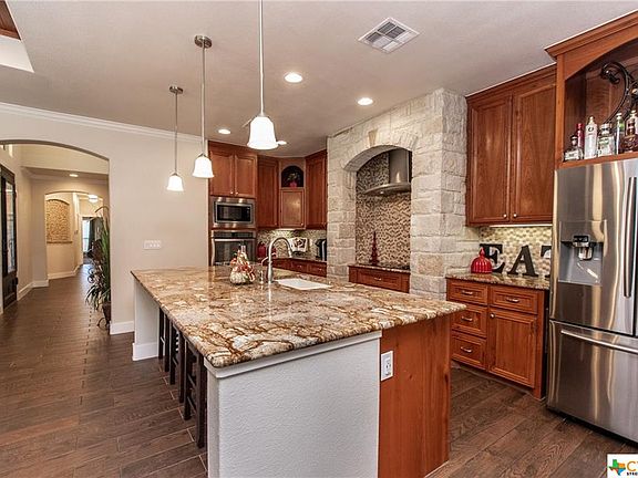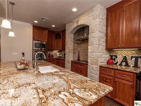 This Gorgeous Tuscan style home is fully landscaped with multiple outdoor living areas and a children's play area. A large courtyard, a covered patio and an outdoor kitchen, perfect for entertaining guests. Security features include a gated entry with alert sensors, remotes, and a Vivint home security system. This home is perfectly laid out to feature an open floor plan, 3 bedrooms, two full baths with both an indoor and outdoor fireplace. So much technology with auto-retractable blinds throughout the home. Specific features in the kitchen consist of a built-in spice rack, soft closing cabinets, automatic lights in the pantry, and a double oven/microwave combination. The oversized two car garage also includes a magnificent mudroom. Come see this Former Parade of Homes Flintrock built home. *Water Softener w/ alkaline filter and Reverse Osmosis filter at kitchen sink ARE NEGOTIABLE*