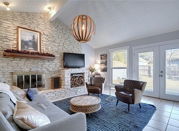 Contemporary modern artistic interior design recently updated including kitchen, bathrooms, cabinets, flooring, appliances, counters, under cabinet lighting, hardware, fixtures, windows, paint, insulation, radiant barrier, and a roof in 2018. Vaulted beam ceiling and fireplace in family. French doors leading out to patio. Double vanities and three closets in Master. Large backyard. Natural light. Mature trees. Oversized lot and garage. Natural gas. Close to eateries and shopping. Minutes to downtown.