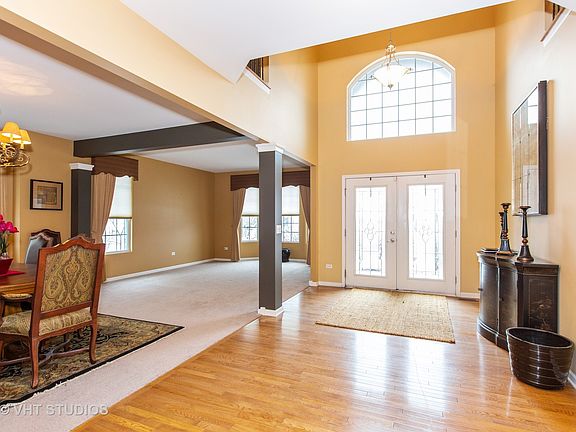 Lots of Living space in this Beautifully Maintained 5 Bedroom, 3-1/2 Bath Home in Herrington Estates served by Highly Rated DISTRICT 202 SCHOOLS with Plainfield East High School. 4400+ SQUARE FEET PLUS a FULL BASEMENT. Enter thru the double door entry into the impressive 2-story foyer with hardwood flooring and iron spindle split staircase which overlooks the open floor plan. Gourmet Kitchen with 42" cherry cabinets, granite countertops, stainless steel appliances, plus a bonus butlers pantry making entertaining guests easier. Big Family Room w/Fireplace. First Floor Den with French Doors is tucked away towards the back of the home. 1st floor Large Laundry Room w/sink for your convenience. The Spacious Master Bedroom is fit for His and Her Royal Highness with tray ceiling, his and her closets, Private Spa Bath featuring separate vanities, shower, whirlpool tub and water closet. Four Bedrooms including the Princess Suite have Walk-in Closets. Full Basement with high ceilings is pre-plumbed for a bath and ready for your finishing touches. 3 Car Garage, Concrete Driveway. Fenced Yard and Patio. Convenient location close to I-55, I-355, Downtown Plainfield, Naperville and Pelican Harbor Aquatic Park/Swim Club. A Lot of Home for your money!