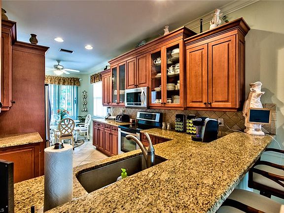 SELDOM AVAILABLE 2 bedroom plus den with attached 2-car garage END unit villa in Heritage Greens. Enjoy your morning coffee watching the sun rise on the large east facing lanai or sip your favorite cocktail on the west facing lanai at sunset. Cooks will be overjoyed when they see the fabulous eat-in kitchen with custom wood and glass cabinets, granite counter tops, breakfast bar and LG appliances. Other features include crown molding, large tile throughout except for the den which has carpeting. Pocket doors have been added in the den for those overflow guests' privacy. The split bedroom floorplan provides guests with the ultimate privacy. The master bedroom offers a walk in closet and a "his" closet along with a bay window to look out at the 5th fairway of the public Arrowhead Golf Course. Heritage Greens offers a community pool, spa, clubhouse and tot lot, along with a fitness center. Activities include basketball, tennis, bocce ball, pickleball and during season, some organized activities. Don't pay to live on the golf course when you can live here!