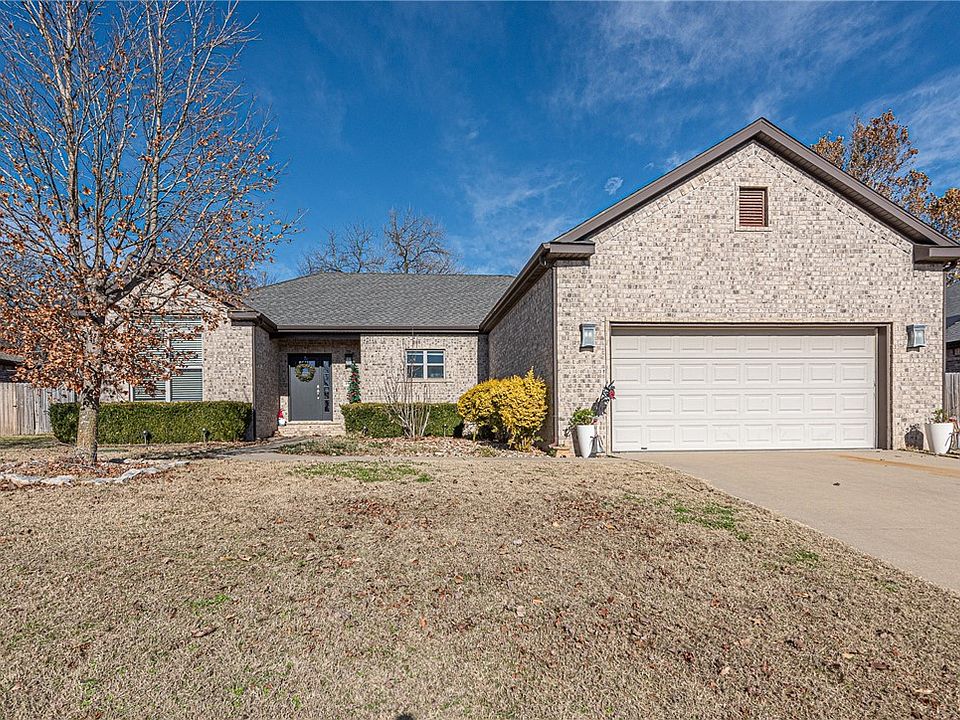 WELCOME HOME! This 3 bedroom 2 bathroom home located in Weatherton Subdivision off of Monroe Ave is central to everything NWA and only 2 miles from I-49! From the covered entry, head inside to an open-concept with wood floors throughout the main living space, a gas log fireplace, and crown moulding details! Spacious eat-in Dining area & U-Shaped Kitchen featuring a large bar-height peninsula, quartz countertops, stainless steel appliances, mosaic tile backsplash, and pantry! Relax and rejuvenate in the primary bedroom with a private ensuite feat- dual sink vanity, built-in storage, tiled shower, and jacuzzi tub. Plus an additional two more bedrooms and a full bathroom! Oversized laundry room with built in shelving & cabinetry! Head out back to the extended patio with outdoor tv hookup, ceiling fans, and gas heater to enjoy during cooler seasons! Spacious & fenced in backyard! Don’t miss out! Act now!