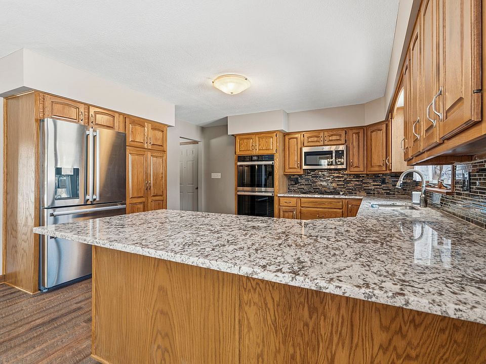 Stylish kitchen with granite countertops and Bosch stainless steel appliances, perfect for cooking and entertaining