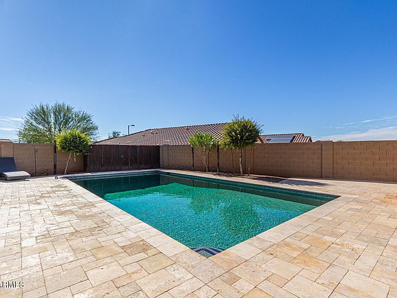 PRICED BELOW APPRAISED VALUE! Welcome to this beautifully designed two-story home, where style, space, and functionality come together in perfect harmony. This residence boasts an expansive great room, formal dining with vaulted ceiling, crown molding and rich wood-look tile flooring. This home also features a new water heater, fresh neutral paint, and recently updated carpet. Enjoy the chef-inspired kitchen that showcases a large granite island, stainless steel appliances and stacked stone tile backsplash. This thoughtfully designed floor plan offers 4 spacious bedrooms and 3 bathrooms, including a convenient main-floor bedroom, ensuring plenty of room for family living and hosting guests. The 3-car tandem garage provides plenty of room for vehicles and storage. Step outside to the covered patio and enjoy the sparkling pool with stunning travertine deck! Living in this community offers easy access to scenic walking trails, multiple playgrounds, ramadas, and stunning views of the White Tank Mountains. You'll find tranquility and natural beauty all around.