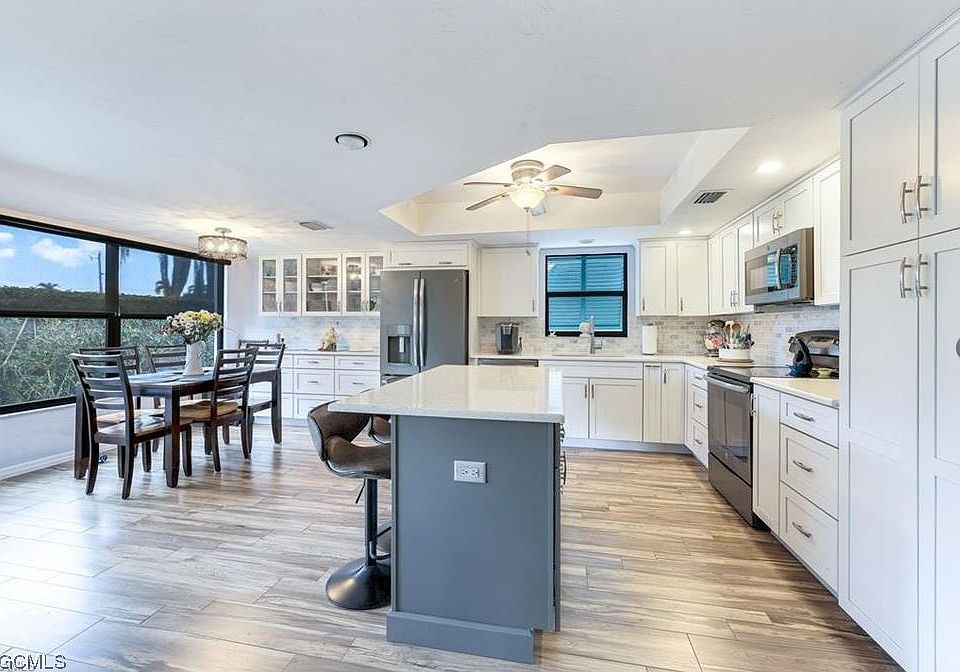 Fenced areaPrivate screened lanaiQuartz countertopsScenic river viewsPalm tree lined sidewalksPorcelain plank flooringOpen-concept design