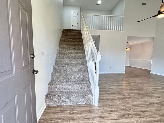 The entire downstairs has LVP flooring, while the upstairs is carpeted for added comfort.