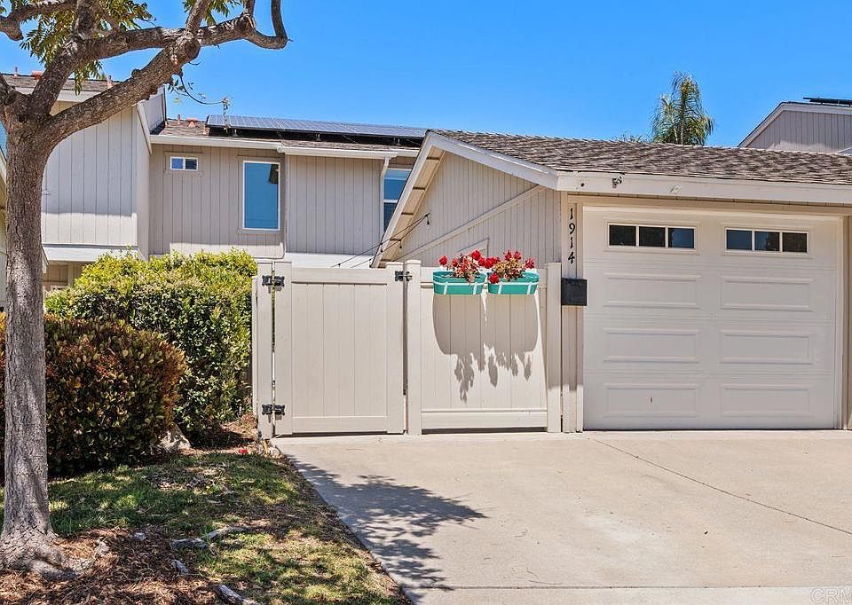 This turn-key condo has been well maintained and updated throughout! With newer Pella windows and sliders, mini-split air conditioners downstairs and in every bedroom, and paid solar you can move right in! The thoughtfully updated kitchen has newer cabinets with pull out features, bottle storage, butcher block counters, stainless LG appliance suite, farmhouse sink with filtered water, and large eat-in dining area. Downstairs has large living spaces with wood-like porcelain tile flooring, two sliders for patio access, built-in desk area, neutral color palette, large closet perfect for use as a pantry, and under the stairs storage. Two stylishly updated full baths offer newer vanities, custom tile shower surrounds, mirrors, plumbing and lighting fixtures. The main bath upstairs also features glass shower enclosure and a fancy commode! All three bedrooms have luxury vinyl flooring, ceiling fans, and custom window shades. Other features include a one car garage with direct patio access, newer garage door with windows, laundry area, water softener system, plenty of storage, shelving and a work bench. With an extra long driveway, two large patios and great privacy this location is ideal. Village Park residents enjoy a pool, Rec room, playground, tennis court, basketball net and close proximity to both the local elementary and middle schools! Just over 3 miles to the 5 FWY, and Encinitas beaches, fun on the Coast HWY 101, and the Coaster Station.