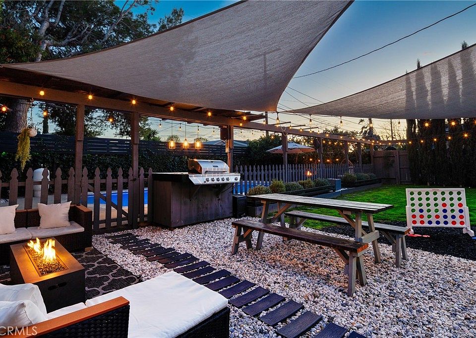 Situated on a quaint tree-lined street on the border of Tarzana and Reseda resides this delightful 3 bed, 2 bath gem that has been refreshed inside and out. Step inside and discover a warm, inviting home that features a spacious living room with modern shelving, dining room with built-in seating and a remodeled kitchen equipped with newer black stainless steel appliances. The primary suite boasts an ensuite bathroom with a soaking tub, rainfall shower system and double vanity. In the backyard you'll find your very own private oasis surrounded by lush greenery. Perfect for entertaining, it consists of a fenced pool, built-in bbq and lounge seating around the firepit. Additional amenities include direct access to a finished 1.5 car garage with laundry. Excellent location, enjoy being down the street from a large park/library and nearby restaurants/shopping.