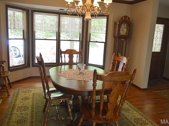 This Ranch home is on 3 wooded acres with 4 bdrms, 3 1/2 baths, a Great room with vaulted ceilings, brick wood burning fireplace, 2 sets of patio doors leading to composite deck. Formal Dining Rm with coffered ceiling & bay window. Kitchen has vaulted ceilings, 42" maple cabinets, center island with elec cooktop, granite counter tops, ceramic back splash, Main floor Laundry, Breakfast room with wet bar. Master Bdrm with ceiling fan, Mstr Bath has vaulted ceilings, jacuzzi tub, walk in closet & separate shower. The walk out Lower Level is finished with a Large Rec Room & full bath. There is a walk behind bar area for entertaining. The LL bedroom includes a walk in cedar closet. There is a spacious side entry 2 car garage. The exterior is brick and vinyl with an asphalt driveway.
