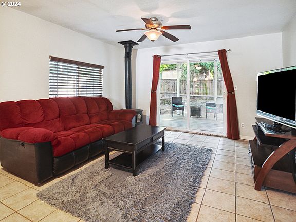 Cute-as-a-button Forest Grove bungalow situated on a lovely and private 0.13 acre flag lot. Perfect starter home or downsizing option with tons of outdoor space. Open concept living room with wood stove flows seamlessly into the sparkling kitchen with a large island, allowing for easy entertainment possibilities. Primary bedroom features built-in shelving + a convenient Jack & Jill bathroom to the second bedroom which can also double as a home office/gym. Brand new interior paint throughout + newer roof (2023), new cadet wall heaters, and newer water heater. Utility room plumbed for an additional half bath. Large fenced backyard with lots of room for furry friends + covered deck and fire pit perfect for summer gatherings. Gardening possibilities galore including a mature pear tree in the front yard + detached tool shed for additional storage. Peaceful neighborhood and stellar location just across from B Street trail for tons of nature walks. Close to Downtown Forest Grove in minutes to enjoy cute restaurants and shops! Easy access to parks, shopping and schools including Pacific University. Come check it out!