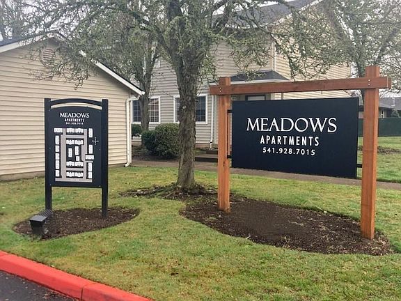 At Meadows Apartments, we strive to offer you the absolute best in property management. You will enjoy our secluded and relaxing setting surrounded by lush landscaping in a convenient location. Our office is open to you Monday - Friday from 8:30am am until 5:30pm. Saturday 9:00 am to 5:00pm and Closed on Sunday . Included in the prices for our apartment homes is the exclusive use of our 24 hour fitness center, our clubhouse, as well as our colorful park like playground. We have no move in fees and we don't ask for first and last month's rent. Just your Security deposit and 1st months rent will get you into your new home! Come in today to see why Meadows Apartments is a great place to call home!