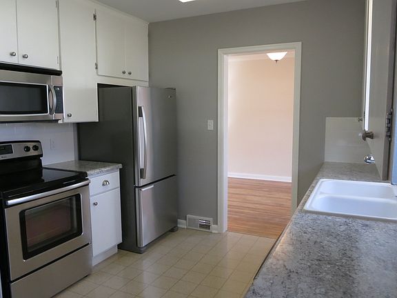 Beautiful Corner Lot! Porch with window boxes and a cute front door! Updated kitchen enjoy newer Stainless Steel Appliances, newer counter tops, back splash. Entertain family and guest in a large living room with a large window and tons of natural light, well maintained hardwood floors. Dining room with updated lighting. The Master Bedroom has hardwood floors, and a mini walk-in closet. The second bedroom features hardwood floors and a large closet. The upstairs bathroom has been remodeled with subway tile, shower head, sink and medicine cabinet. The basement has a large family room with new carpet and a kitchenette. With an additional full bath ( don't miss the fun red soaker tub) in the lower level. The detached 2 car garage is in good condition and has a workbench and plenty of space for all projects. Beautiful flat yard. This home should not be missed!