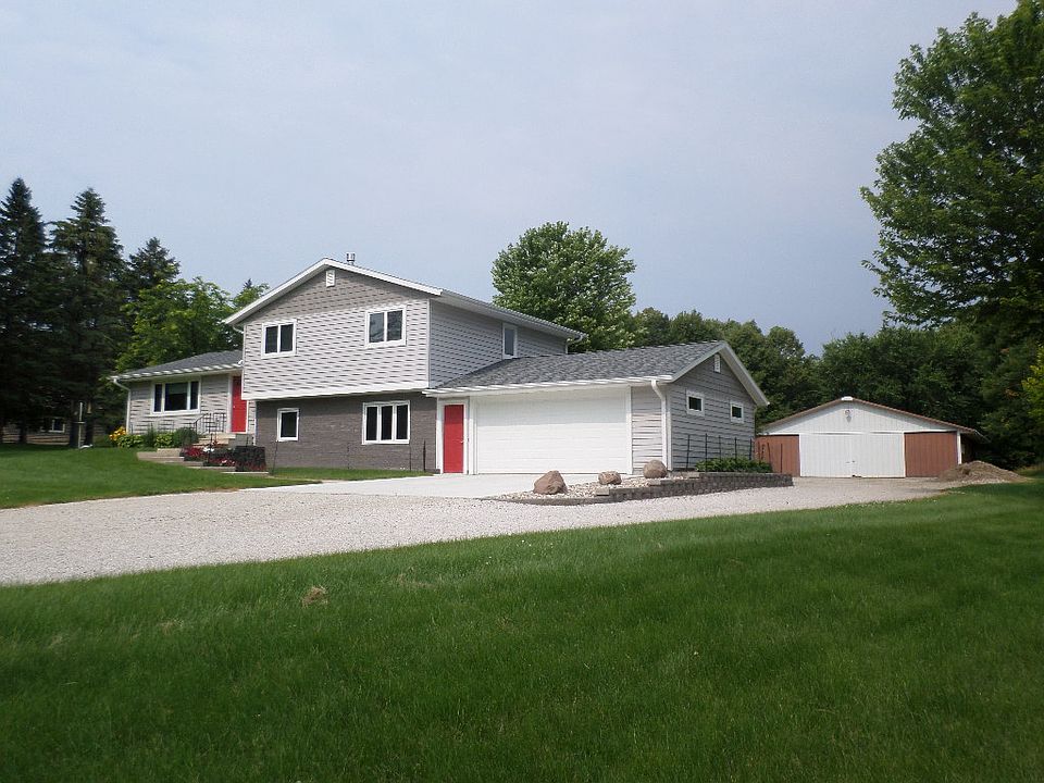 Wonderful Tri-level home in the perfect location. The main level offers a beautiful kitchen featuring Holiday cabinets, dining room & living room. The upper level has the master bedroom/bath, 2 additional bedrooms and a full bath. The lower level boasts a family room, office, bath and laundry room and the basement offers another bedroom and the utility room. There is a double detached garage and a 40 x 63 heated shop. Eagle & Anderson windows. New vinyl siding, new shingles and a new Dura deck all in the last 2 years.