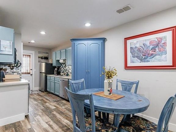 Broad drivewayBeautifully updated kitchenPrivate backyardKing bedsBright white lightingLight blue cabinetsExtra twin bed