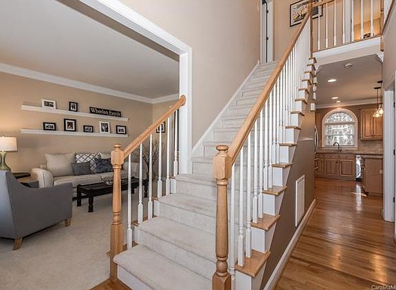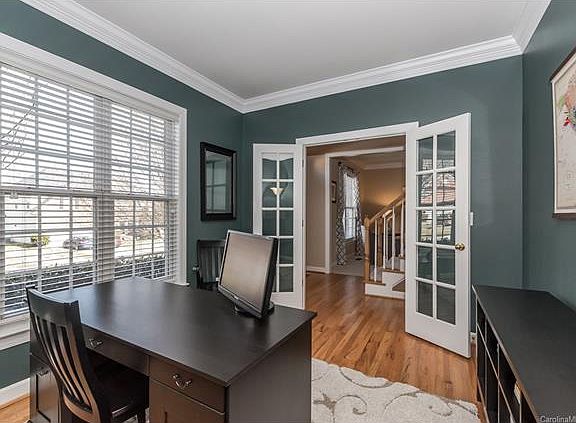 Extremely well-maintained, move in ready! Both HVAC replaced 2015, roof replaced 2017, water heater replaced 2015, Nest Smarthome installed. Fenced yard, backs to trees for added privacy. Kitchen remodeled 2016 w/ stainless steel appliances, custom back splash, granite counters, Maple raised panel cabinetry, lg island with pendant lighting, hardwood flooring! Office on main floor with French door access. Moulding package and designer paint throughout the main floor. Master suite upstairs with tray ceiling. Master bath has dual vanities, fresh paint, garden tub, tile flooring, sep shower, water closet and walk-in closet. Convenient to I-85 , light rail for easy access to uptown, UNCC, shops.