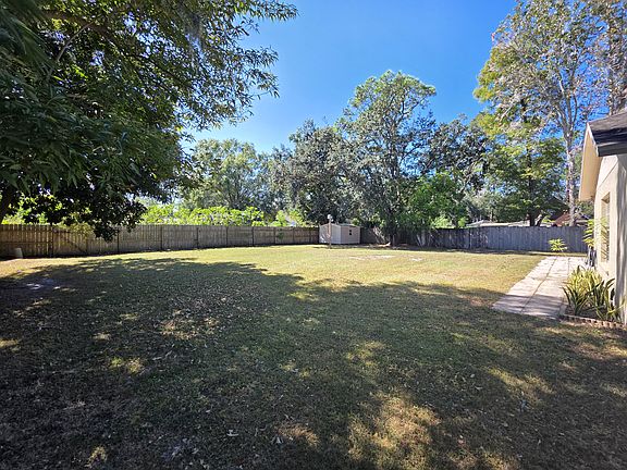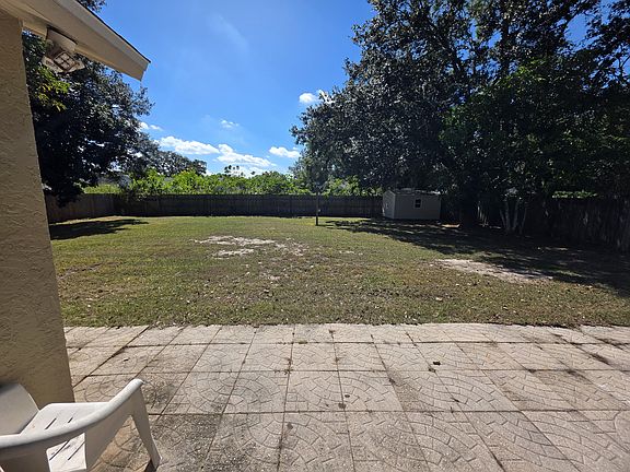 Set on approximately one-third of an acre, the backyard is fully enclosed with a privacy fence and features shade and mango trees. There is also a utility shed for extra storage.