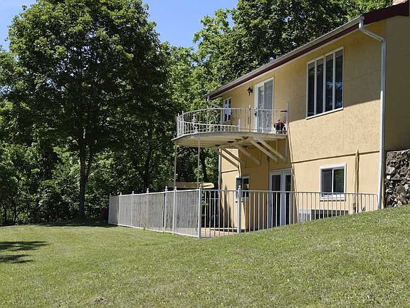 Mediterranean-style 3BR/3.5BA. Open concept living room, dining and kitchen w/ cathedral ceiling. New carpet in den and 2 BRs. Dual heat-elec furnace & outdoor wood burning furnace. 2 fireplaces. Double ovens, new range/oven, rangetop, 2 kitchens, 2 W/D hookups. New HW heater, stove hood. Power chair lift. Ceiling fans. Custom 8' entry doors. Foyer doors are 6 foot w/8 carved panels. RV pad w/elec/water/ sewer/panel. 12x10 barn, hunting blind, peach/pear/plum/apple trees. Blackberries. Stocked pond! Creek.