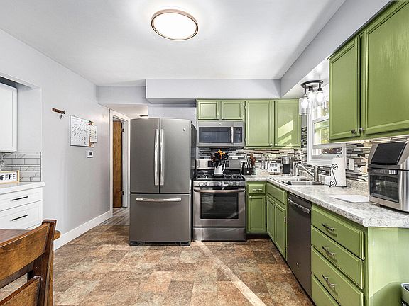 Welcome to this beautifully updated home in a cozy, serene neighborhood; with a park, ball field and bowling alley just a couple blocks away! This home has been updated with a new furnace (in 2021), new flooring, a coffee bar, a pantry, a dedicated laundry area, a jetted tub and a beautiful open kitchen with all appliances included! You will love walking out the slider to your spacious new deck, the large private backyard, a massive shed for all your storage needs, and the extra large attached garage; with ample space for storage, tools, and a hangout - with access doors to the front and back yard from the garage and a pull-down ladder for additional storage above! The playground is included and the backyard has privacy fencing on both sides! Very quick highway access, close to both North and South on-ramps!