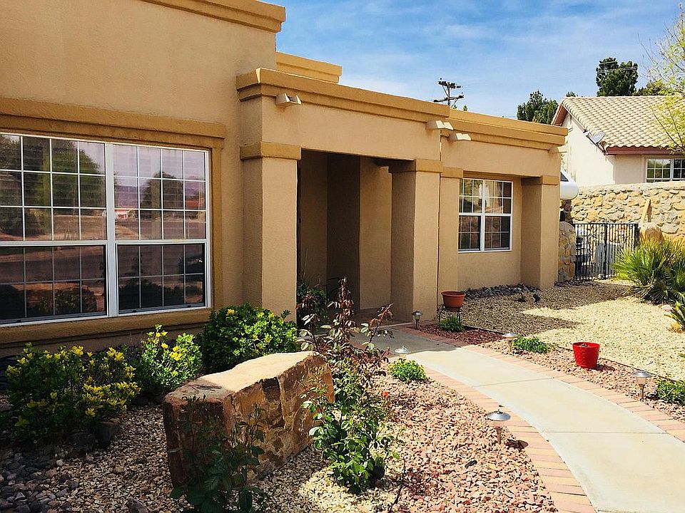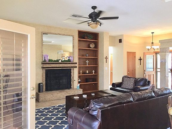 Beautiful 3 bedroom 2 full bathroom home for rent. Located near NMSU(5-7 minute drive) and Memorial Medical Center(walking distance). Very nice neighborhood, close to everything - hospital, university, shopping, businesses. House has several upgrades including granite counter top in kitchen and bathrooms, stainless steel appliances, beautiful gas fireplace, skylights in family room, kitchen, laundry room, bathroom, walk in closet, beautiful tile back splash in kitchen, tile medallion & chandelier in entry way, central vacuum, water softener, wood built ins and walk in closets. Updated designer light fixtures, refrigerated air, tile and wood floor through out the house, no wall to wall carpets, wood blinds through out the house, ceiling fans in 3 bedrooms, family room and backyard patio. Private backyard, fully landscaped, sprinkler and water system, low maintenance with Pergola. 2 car garage with built-in storage in garage.