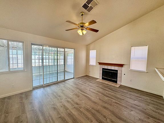NOW AVAILABLE - 4 Bedroom, 2 Bath popular floor plan with vaulted ceilings, 2 large living rooms, one with fireplace, extended interior/exterior patio area, kitchen with refrigerator, inside laundry room with washer and dryer included, master bathroom has tub/shower combo and double sinks, guest bathroom shower is handicap accessible. Lots of windows throughout with new blinds. This home features new interior paint, new vinyl flooring throughout, new HVAC system, new front yard landscaping Backyard has large storage shed! $2500 a month rent plus $2500 security deposit. Pets strictly negotiable with $500 increased security deposit. NO SMOKING Available NOW! 1 year lease required. 3 for more info.
