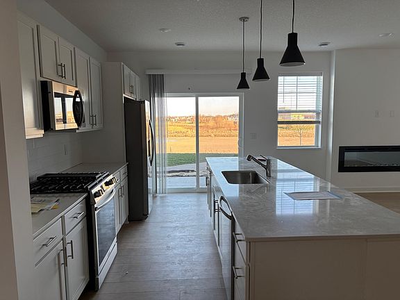 New 2024 construction townhome with St. Clair floorplan is spacious & light-filled, 2-levels. The home has 3 large bedrooms (all upper level) & 2.5 baths. Open main level floorplan w/2-story foyer, 9-ft. ceilings, electric fireplace w/heat feature & patio. Kitchen w/white cabinetry, quartz countertops, slate-finish appliances, gas stove, extra large center island, backsplash, cabinet pantry & more. Upper level features 3 bedrooms, 2 bathrooms & laundry room. There is a spacious owner's suite offering its own private ensuite bath that includes a double sink vanity, 5ft walk in shower & large walk in closet. Two-car garage & beautiful sunlit location.