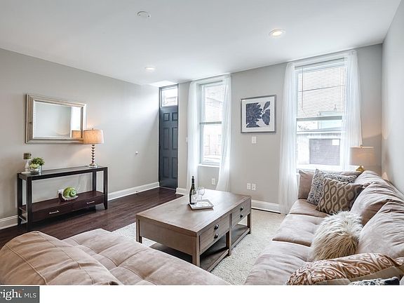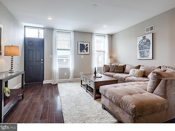 Meet this 3 bedroom, 2 bath Pennsport home! Large open living room with two front windows, hardwood floors throughout the first floor, dining room space, half bath and coat closet / pantry closet. Galley Style Kitchen boasts subway tile backsplash, stainless steel appliances, white cabinets and sliders out to a good size yard. On the second floor you'll find a front bedroom with two windows and three closets; a middle bedroom with one window and small closet and a 3-piece hallway bath with custom tiles. The master bedroom offers two closets, two windows, hardwood floors and a full bath with vanity with granite countertop with custom base and a large stand up shower with bench and custom tiling. The finished basement offers ceramic tile flooring, sump pump, laundry and mechanical room.