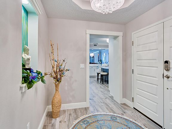 Open the door to opulence in this remarkable 3/3.5 corner unit Condo. You guessed it, each bedroom has a private bathroom. The separate half bath is for guests. Panoramic views of the beach from almost everywhere in this unit. Elegant master suite with adjoining master bath boasting double sinks, his and hers closets, rainfall shower, and jetted tub. Updated modern Kitchen with stainless steel appliances and breakfast bar. Quartz counter tops and porcelain tiling throughout. Secured access to the private elevator leading to the unit.