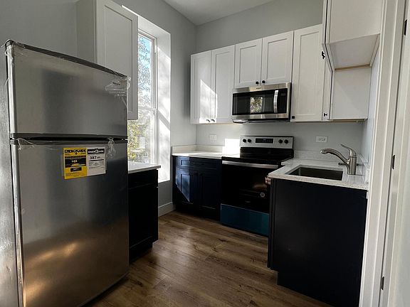 Cozy Studio, Brand new everything in this gorgeous Grey Stone walk-up. New floor, drywall, insulation, windows, New Cabinets in both kitchen and baths, High Efficient Furnace,SS appliances, Quartz countertops, with plenty of room for a table in the kitchen. Situated on a large lot with nice side yard perfect for hanging out, kids playing of pet area. Garage parking spots are available for $100 each, and plenty of room for storage outside the unit for bikes and such.