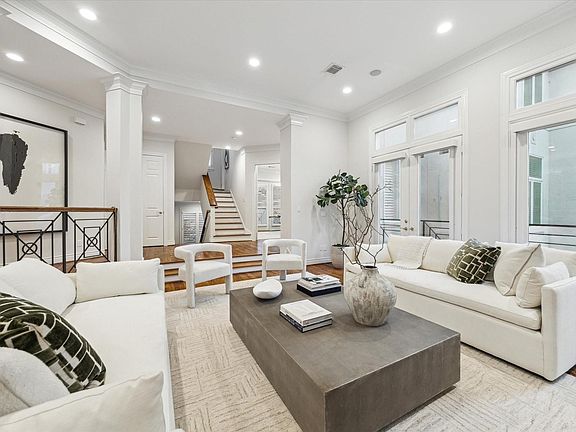 Elevated and elegant living in the River Oaks area. Nestled in a quiet, gated community blocks from your favorite dining, cafés, and shopping, this sophisticated free-standing residence by Lovett Homes showcases 12-foot ceilings, rich hardwood floors, and quartz and marble finishes throughout. First floor includes an ensuite bedroom with beverage center/ gameroom/second living area, plus a study. Second floor is the heart of the home, filled with natural light and designed for effortless entertaining, bright dining room, library with French doors, spacious family room with cast-stone gas fireplace, and gathering kitchen with an inviting breakfast area. Upstairs, serene primary suite offers a sitting area with built-ins, marble fireplace, two closets, and an additional ensuite bedroom. Elevator-ready access to all levels. Zoned exemplarily to River Oaks Elementary. Spann offers the perfect blend of luxury, comfort, and convenience in one of Houston's most coveted locations. Gorgeous!