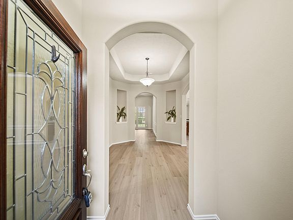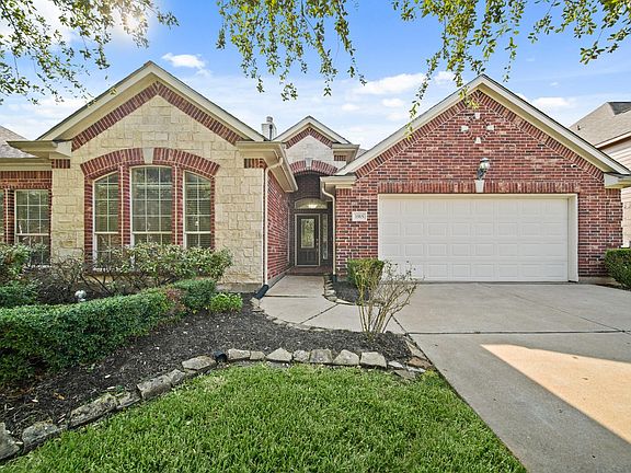 Discover this charming and beautifully updated 4-bedroom, 3-bath home in Pearland’s desirable Stonebridge community. With 3,030 sq. ft., this one-story residence features fresh interior paint (2025), recent flooring (2025), a recent roof (2025), water heater (2020), and dual A/C units (2021 & 2022). Modern upgrades include a French drain, digital touch-screen thermostat, wired/wireless motion sensors, and security cameras at the front and back of the home. The open floor plan offers a spacious family room with gas log fireplace, an island kitchen with plenty of storage, a formal dining room, and a private primary suite with double sinks, soaking tub, separate shower, and walk-in closet. Secondary bedrooms provide en-suite and shared bath options, perfect for family or guests. Step outside to enjoy a covered patio and fenced backyard designed for entertaining or relaxation. Community amenities include park, ponds, and trails—all within Pearland ISD - ready to welcome its new homeowner.