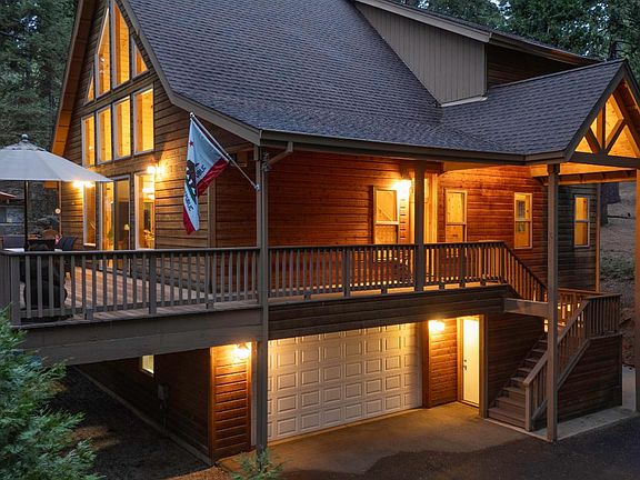 Experience refined mountain living in this exceptional custom-built chalet - a 3,100+ square foot retreat tucked into the tranquil beauty of Blue Lake Springs. Built in 2005 with timeless craftsmanship and updated with modern comforts, this elegant three-level residence offers 3 bedrooms, 3 full baths, a loft, a spacious recreation room, and an oversized two-car garage - perfectly suited for both grand entertaining and quiet escape. The main level welcomes you with soaring knotty pine ceilings, newly refinished hickory wood floors, and dramatic floor-to-ceiling windows that bathe the home in natural light and frame serene forested views. A stone fireplace and gas stove provide warmth and ambiance, while the chef's kitchen impresses with granite countertops, rich hickory cabinetry, and a generous island designed for both function and gathering. Two comfortable bedrooms and a full bath are also located on the main level, offering convenience and flexibility for guests or multigenerational living. The upper level is home to a versatile loft space and a luxurious primary suite with vaulted ceilings, a walk-in closet, and a spa-inspired bath featuring a jetted tub, dual vanities, granite finishes, and custom tile work. Downstairs, a spacious recreation room invites relaxation, creativity, or entertainment, with direct access to the attached garage and laundry room. Outdoors, a sweeping deck offers an ideal setting for al fresco dining or peaceful reflection beneath the pines. Thoughtful upgrades include a recently updated HVAC as well as a whole-house water filtration system. A metal bear box and a covered entry add ease to mountain living. Ownership includes exclusive access to Blue Lake Springs amenities: two private lakes, a seasonal swimming pool, tennis courts, a clubhouse, and more. Most furnishings are included, making this a truly turnkey opportunity. The home has also been a successful short-term rental, offering excellent income potential for those seeking a part-time retreat or investment property. Ideally located just 10 minutes from Calaveras Big Trees State Park, 30 minutes to Bear Valley Ski Resort and Lake Alpine, and 20 minutes to award-winning wineries, fine dining, and the boutiques of historic downtown Murphys, this extraordinary home is a rare opportunity to own a slice of luxury in California's Sierra Nevada. Video tour: https://youtu.be/l3R_DJYI-sY?si=rx-akUok-1lJQXmD