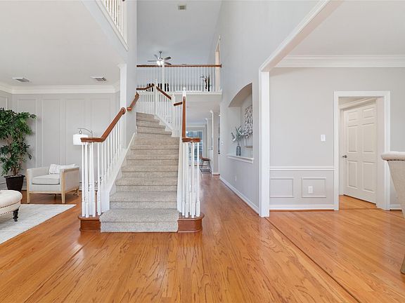 Highly sought-after home in Cinco Ranch North Lake Village is situated on a quiet cul-de-sac street, offering a peaceful setting among lush landscaping, & trails. Residents enjoy access to a golf course community & in the top-rated Katy ISD. The beautiful home features an open, elegant floor plan w soaring ceilings & rich wood flooring throughout most of the 1st level. A formal living & dining area is ideal for entertaining. The main living room, w gas fireplace & abundant natural light, provides a cozy centerpiece. The spacious kitchen offers extensive counter & cabinet space, an undermount sink, & stylish under-cabinet lighting. A walk-in pantry. Backyard oasis w sparkling pool, ideal for gatherings & relaxation. The expansive primary bedroom features an updated en-suite bathroom that includes a soaking tub & seamless glass shower. Upstairs, you'll find 4 large bedrooms, a game room, & versatile study room w built-in shelves. Freshly painted, 2 new furnaces & water heater.