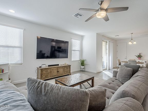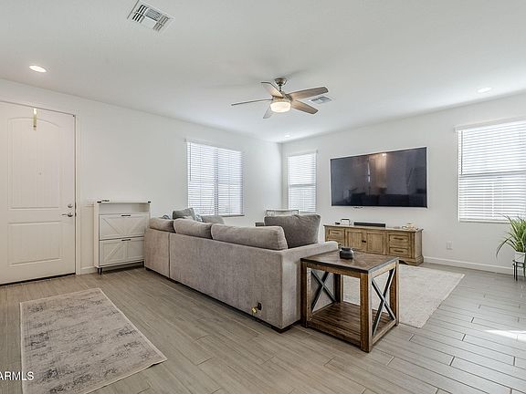 This stylish Spanish-inspired home blends modern design with the charm and convenience of North Phoenix's premier master-planned community. Inside, the open-concept layout is filled with thoughtful upgrades, including 8' interior doors, 4-1/4'' baseboards, and elegant shaker-style cabinetry painted white. The kitchen shines with granite countertops, a boxed-in refrigerator space, and pendant light prewires, making it both functional and inviting. The modified primary bath features a walk-in shower with cultured marble surrounds and a clear glass enclosure, offering a spa-like retreat. An elevated outdoor space with lush artificial turf, stylish pavers, and a built-in gas stub for easy backyard grilling. A 4-foot gated entry at both the front and rear of the side yard adds convenience and privacy as well as a driveway (not all homes in here offer this!). The home also includes low-voltage, plumbing, and electrical upgrades throughout, plus a water softener rough-in for added comfort.
