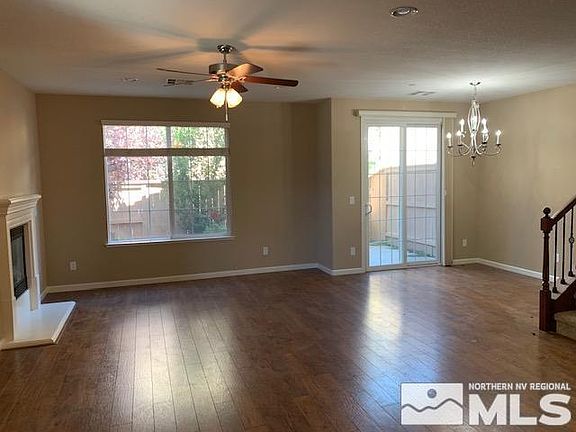 (entrance and main living downstairs, bedrooms and bath upstairs) No pets. Highly upgraded end unit in Esplande. This 1760 sqft condo features an open concept great room w/gas fireplace and lots of windows. Hardwood flooring downstairs, 3 bedrooms, 2 1/2 baths. Kitchen is open to the living area and has cherry cabinets, stainless steel appliances, granite counters, tile back splash, pendant lights, pantry, refrigerator, dishwasher & microwave. Good size primary bedroom with ceiling fan. dual sinks, garden tub and shower stall. Window coverings throughout. Gorgeous Private patio to enjoy the outdoors, perfect for enjoying morning coffee or cocktails. The unit has access to the community pool and spa. Close to Damonte Ranch Park and wetlands and walking paths. Refrigerator, washer, dryer are included. Close to shopping, restaurants, parks retail and freeway access. $2250 a month plus deposit. Trash, sewer and water paid by owner. No pets. Available December 1, 2022. One year lease. A rare find in the community, so take a look today.
