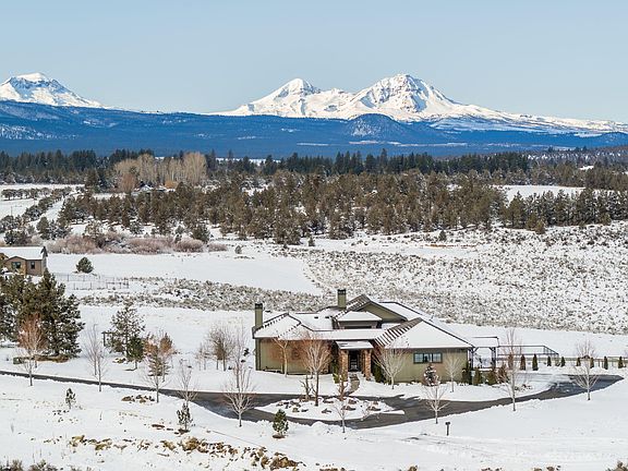 Spectacular Cascade Mountain Views from West Tumalo home on 15.55 acres. Beautiful PacWest home offers panoramas all the way from Mt Bachelor to Mt Hood. Tree lined drive leads to gated courtyard warmed by wood burning fireplace. Upon entering the home you are greeted by breathtaking views from great room, w/ impressive fireplace, high ceilings & balusters framing butler's pass-through into gourmet kitchen w/ its own fireplace, breakfast bar, convection & steam ovens, warming drawer, large pantry, & even a dumbwaiter to deliver snacks to lower level family/billiard room, gym, 2 en-suite guest rooms & wine cellar. Main level primary suite w/ fireplace, access to hot-tub overlooking the Cascades; bath w/ steam shower, tub, water closet & walk-in closet. There is also a main level office w/ courtyard access, murphy bed & full bath. 4-stall barn, PLUS a 2 Bedroom/1.5 Bath home, pickle ball court, fenced dog run, waterfall firepit labyrinth apple trees & pasture
