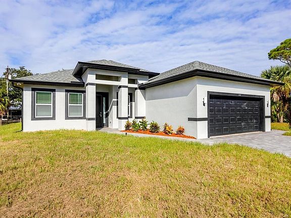 Under Construction. Brand-NEW – Modern 4-Bedroom Home with High-End Finishes! Be the first to own this stunning 4-BEDROOM, 2.5-BATHROOM home offering 1,840 sq. ft. under air, thoughtfully designed for comfort, luxury, and functionality. Ideally located near top-rated restaurants, shopping centers, and everyday amenities, this home offers the perfect blend of style and convenience. Step inside to soaring 10-foot FLAT ceilings with elegant TRAYS that create a spacious and airy atmosphere. The chef-inspired kitchen features a quartz island with waterfall edges, soft-close doors and drawers, a full stainless steel appliance package, and a huge 6’ x 5’ walk-in pantry. Quartz countertops are featured throughout the entire home, adding a seamless touch of luxury to every room. The spacious primary suite is your private retreat, featuring two large walk-in closets, double vanities, a soaking tub, and a walk-in tiled shower—perfect for relaxation and rejuvenation. The guest bedrooms are thoughtfully situated on the opposite side of the home, offering privacy and comfort, with a full bathroom conveniently located between them. A half bath is also perfectly placed for guests to use without entering private areas of the home. Additional upgrades include luxury vinyl plank flooring and ceramic tile throughout, impact-resistant windows and doors, an expansive lanai for outdoor living, and a finished two-car garage. The home is located in an X flood zone, saving you money on insurance while providing peace of mind. This beautifully designed new build is scheduled for completion by the end of July—don’t miss your chance to make it yours. Schedule your private showing today!
