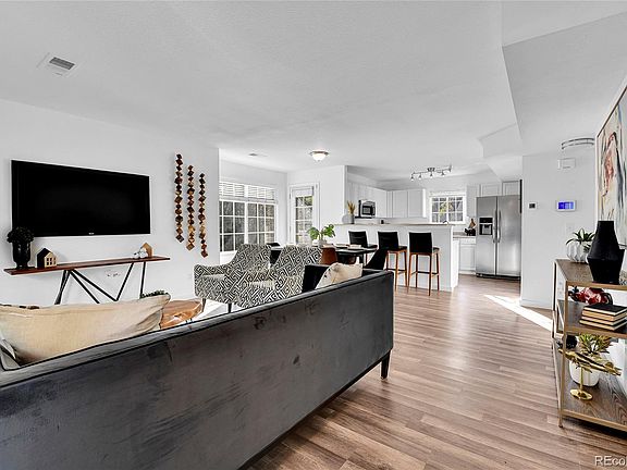 Newly renovated 2-bedroom, 3-bath end-unit townhouse, bathed in natural light thanks to its south-facing orientation. Featuring fresh paint and new flooring throughout, this cozy home boasts large double primary bedrooms, each with ensuite bathrooms and walk-in closets, making it ideal for comfort and privacy. Convenient second-floor laundry eliminates the hassle of hauling baskets up and down stairs. The lower floor features a finished bonus room that is perfect for an office, exercise room, storage or craft space that feeds into the attaached, oversized 2-car garage. Tucked away from busy streets and overlooking a serene courtyard, this inviting space is close to highways, Buckley Air Force Base, parks, shopping, and dining. Enjoy entertaining on your private balcony and patio, or relax in the clubhouse and indoor pool.