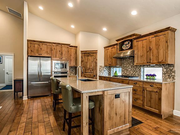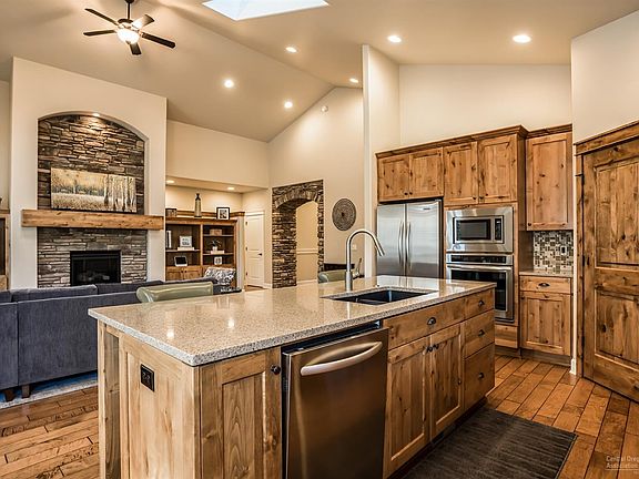 Enjoy single level living in this Shevlin Pines home conveniently located close to Shevlin Park, single tracks and all of the Westside fun. This home is better than new with pride of ownership throughout and offers the finest of finishes. Floor to ceiling windows provide tons of natural light with custom window treatments. Fully fenced and has a low maintenance yard with Synlawn accents. This wonderful Pahlisch built home has an inviting open floor plan, a stone fireplace, gourmet kitchen with eating bar, walk-in pantry and a spacious dining area. The guest suite features a private full bathroom. Expansive and private backyard for family gatherings. Retreat to the master suite with coffered ceilings, big master bathroom and huge walk-in closet. It's wired for a hot tub and don't forget about the three car garage with floor to ceiling built in cabinets for all your toys!