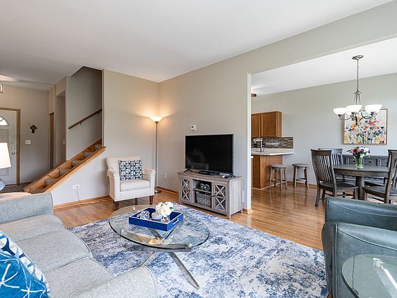 Beautifully maintained townhome in Manchester Cove of Mokena! Nestled on a prime lot directly across the street for a scenic park this lovely home offers a sun-filled living room with gleaming laminate flooring; Spacious kitchen with stainless steel appliances including a brand new stove/oven and washer, custom glass backsplash, breakfast bar & pantry; Dining area with door to the patio adorned by a new covered pergola overlooking the huge yard with lots of green space; Upstairs you will find a master suite that features double closets & private bath with double vanity, 2nd spacious bedroom & 2nd full bath; The full basement is perfect for storage or finishing touches. Great location near train, expressways, shopping & dining. New Windows (2017), Washer (2023), Fresh paint (2021), Furnace, AC & hot water heater (2022),